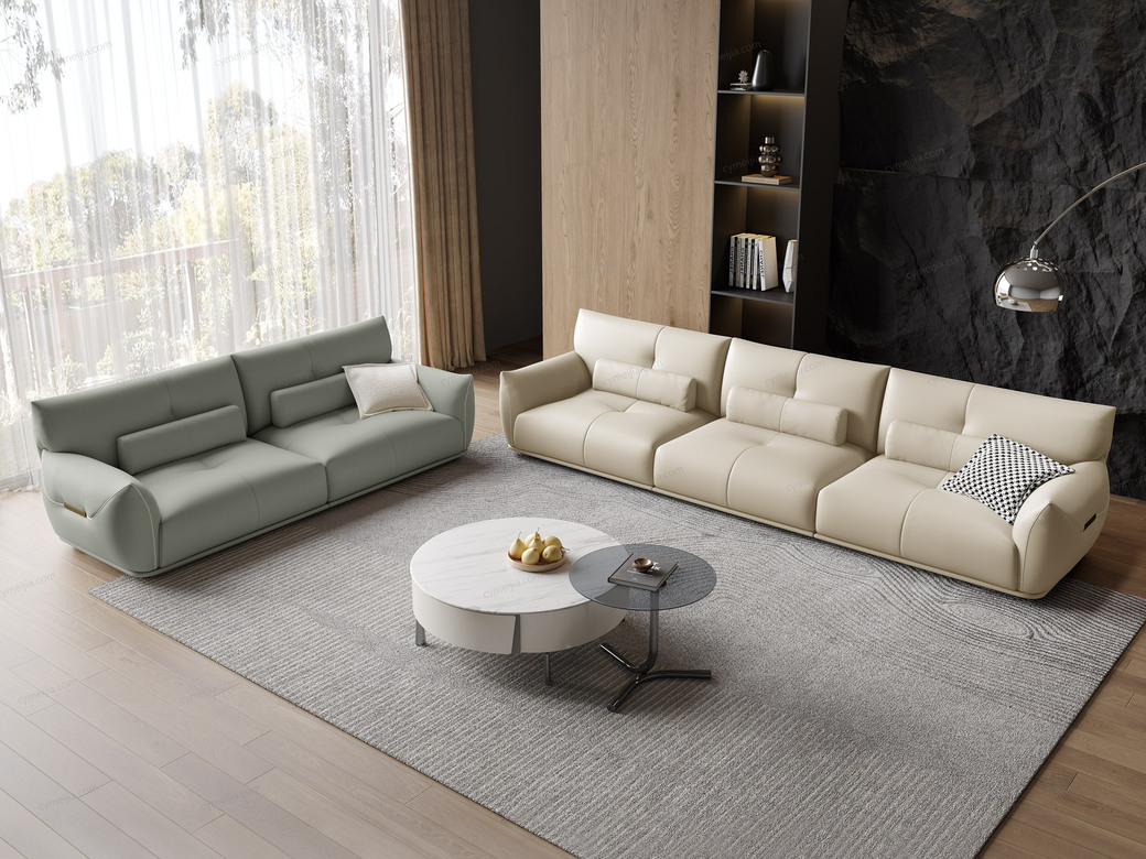 | 产品材质 : | 仿真皮+羽绒靠包+高密度海绵+俄罗斯落叶松实木框架 |