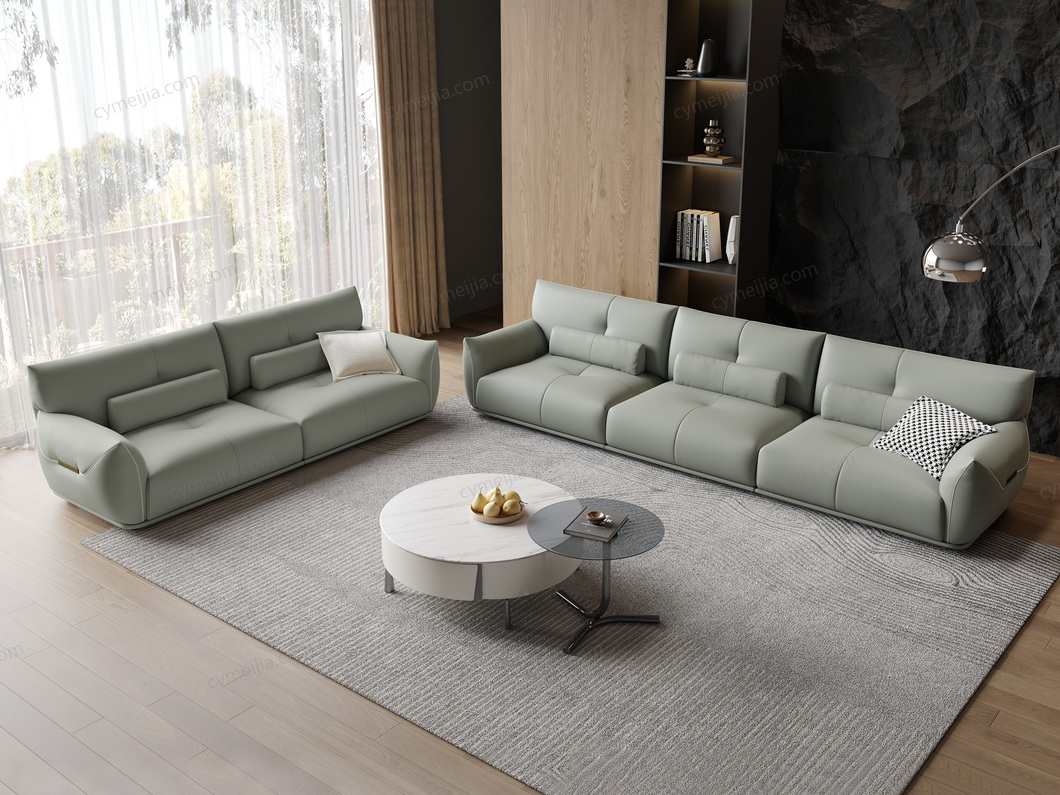 | 产品材质 : | 仿真皮+羽绒靠包+高密度海绵+俄罗斯落叶松实木框架 |