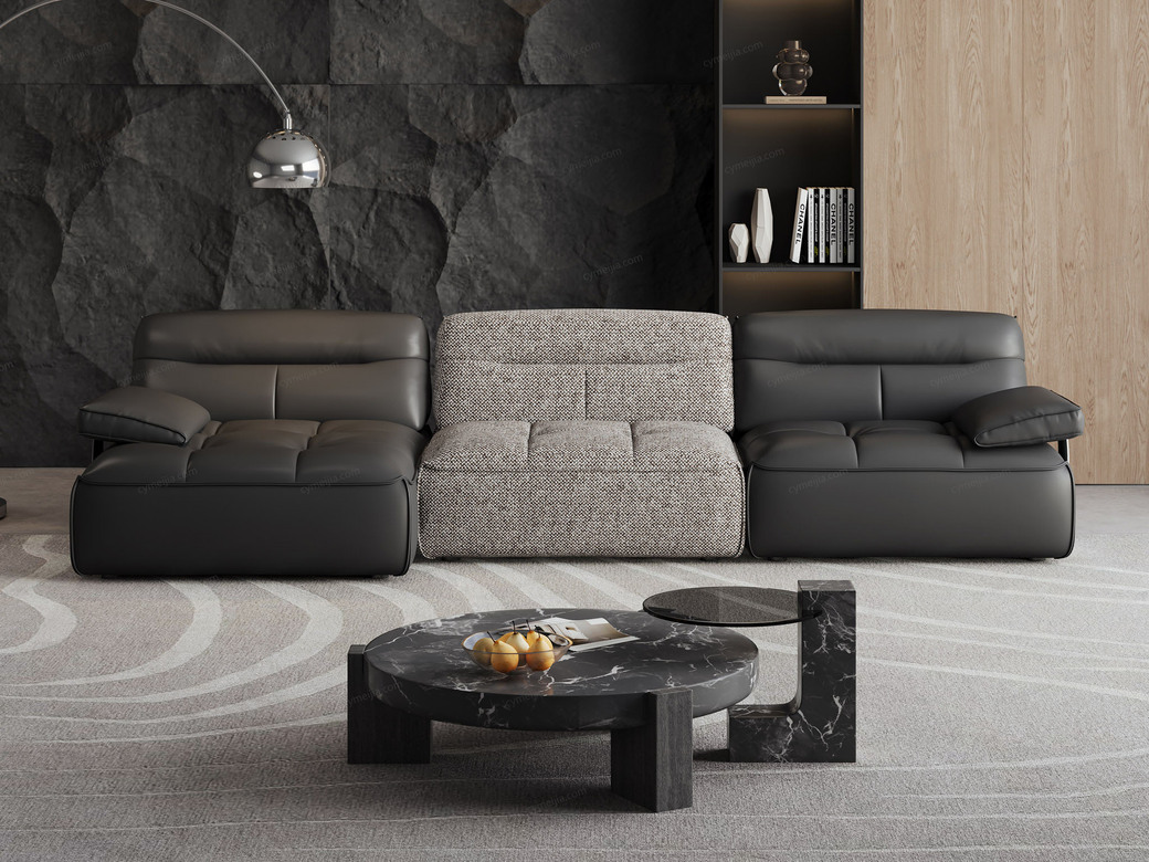 | 产品材质 : | 接触面进口头层黄牛皮+麻布+高回弹海绵+俄罗斯落叶松实木框架+实木脚 |