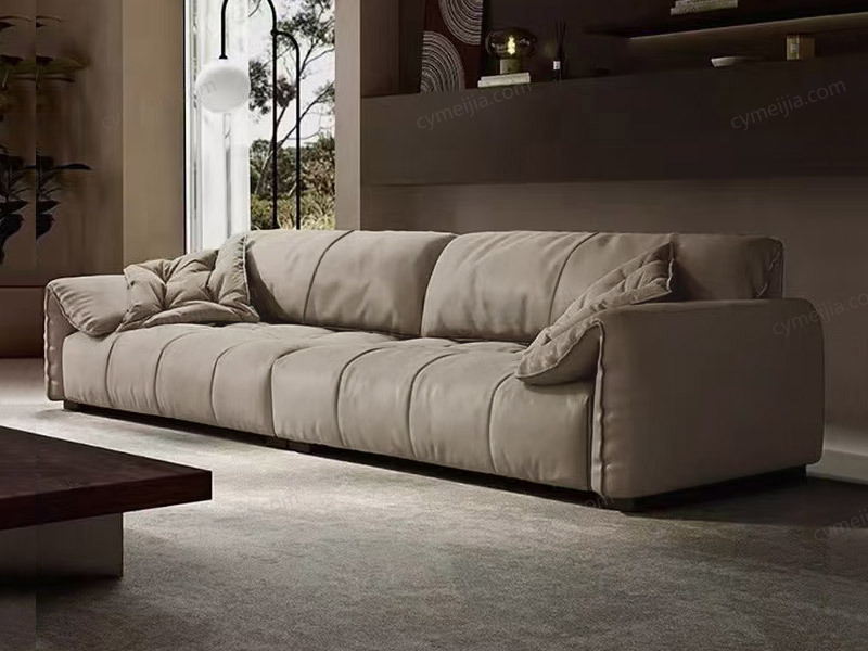 | 产品材质 : | 接触面进口头层黄牛皮+羽绒座包/靠包/扶手+高密度海绵+俄罗斯落叶松实木框架+3cm不锈钢五金脚 |