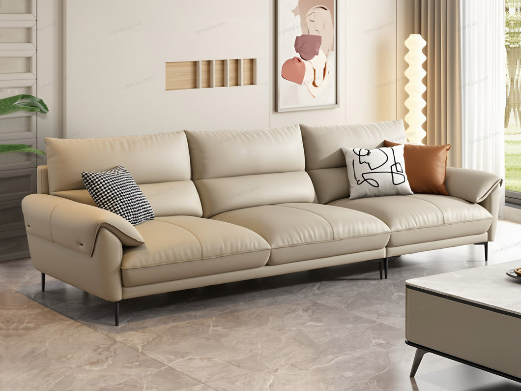 | 产品材质 : | 接触面进口头层黄牛皮+羽绒靠包+高密度海绵+俄罗斯落叶松实木框架+碳素钢脚 |
