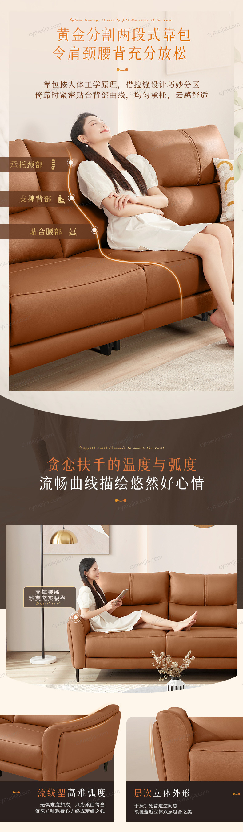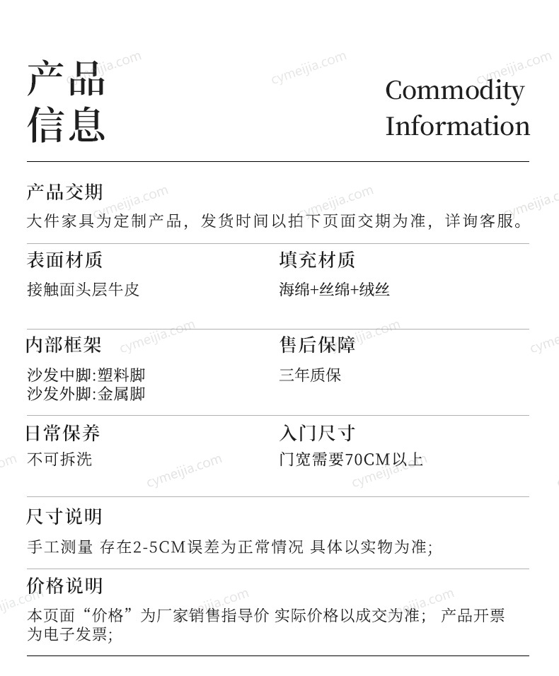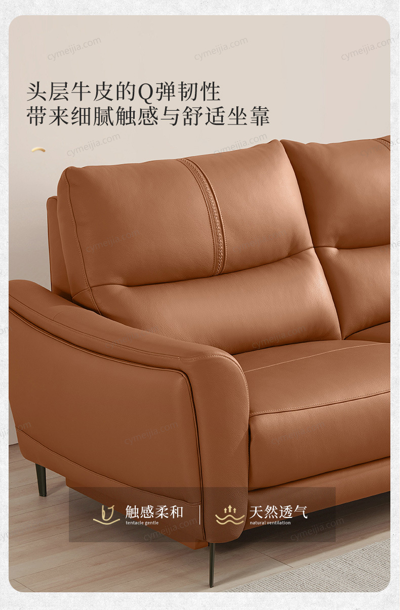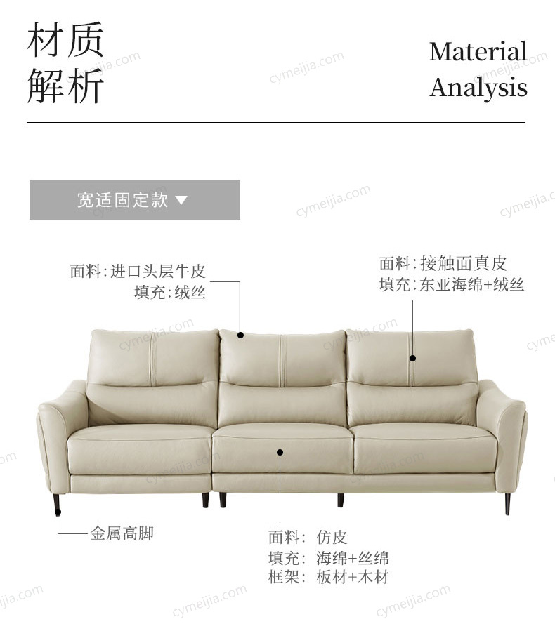| 产品材质 : | 接触面进口头层黄牛皮+实木框架+高密度海绵+金属脚 |