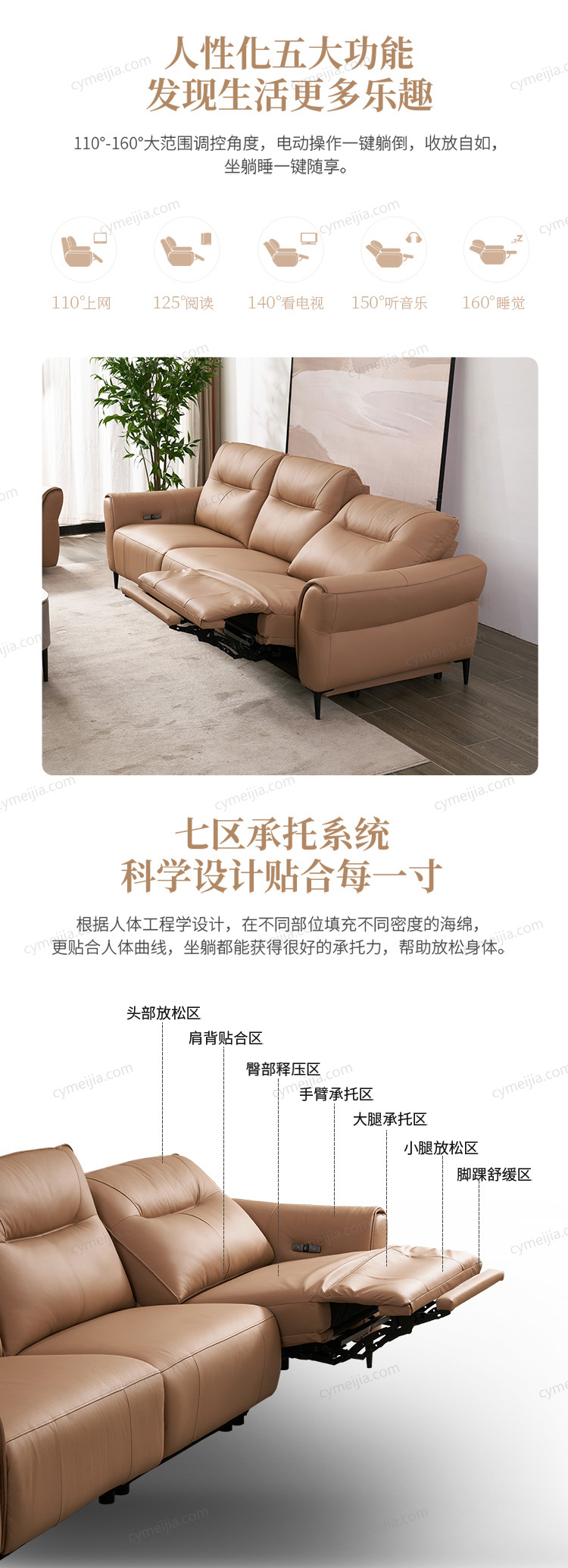 全球大牌,产品畅销美国、英国、加拿大、中国等100多个国家及地区,连续11年领跑国内功能沙发零售市场,深受行业和消费者好评。采用现代极简设计,搭配优质进口真皮,温润质感包裹。电动功能灵活调节,随心契合各种舒适姿态。不仅提升空间美学,更以人性化设计营造精致生活,为您带来舒适与格调并存的居家体验。
