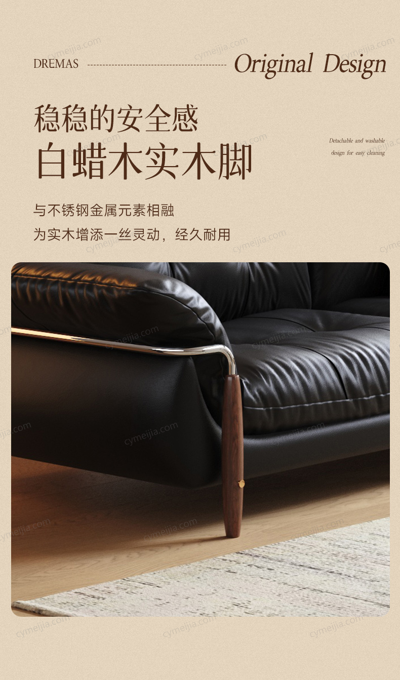 | 产品材质 : | 仿真皮+白蜡木+不锈钢+高密度海绵+俄罗斯落叶松实木框架 |