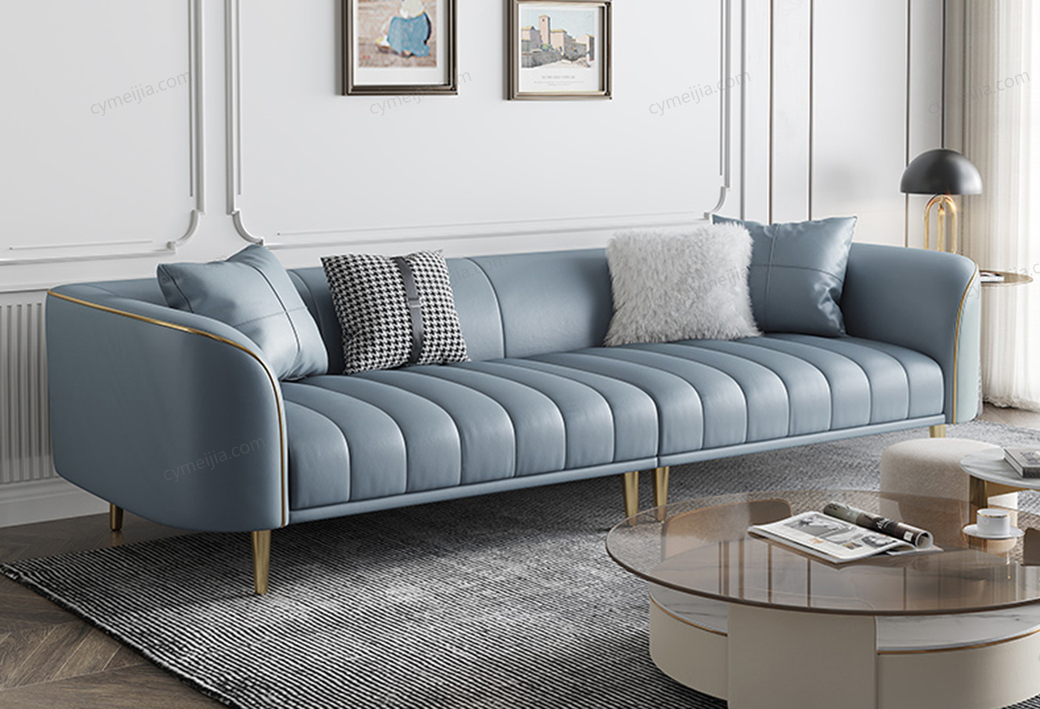| 产品材质 : | 接触面进口头层黄牛皮+羽绒+高密度海绵+俄罗斯落叶松实木框架+不锈钢镀金脚 |