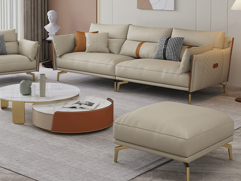 | 产品材质 : | 接触面进口头层黄牛皮+羽绒+高密度海绵+俄罗斯落叶松实木框架+五金镀金脚 |