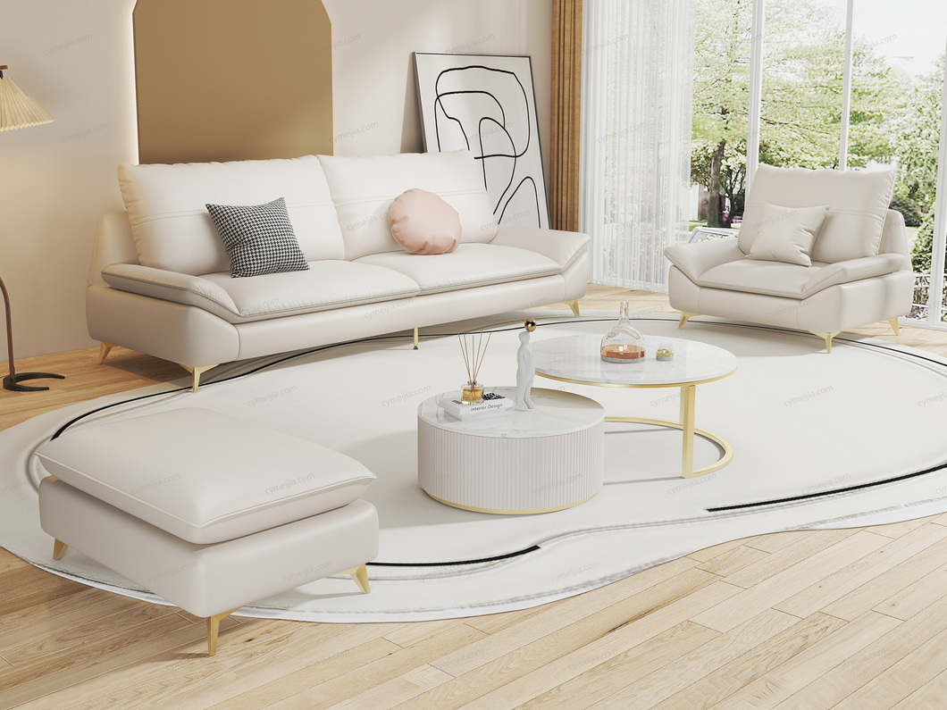 | 产品材质 : | 进口头层黄牛皮+羽绒靠包+高密度海绵+四面刨光桉木方加松木方+进口4.0蛇形弹簧+加宽橡筋 |