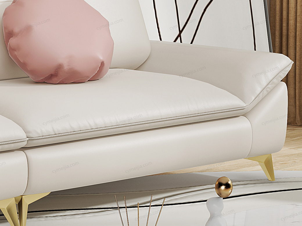 | 产品材质 : | 进口头层黄牛皮+羽绒靠包+高密度海绵+四面刨光桉木方加松木方+进口4.0蛇形弹簧+加宽橡筋 |