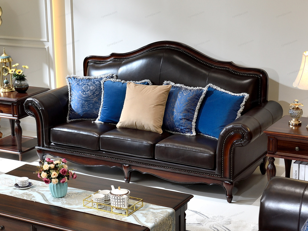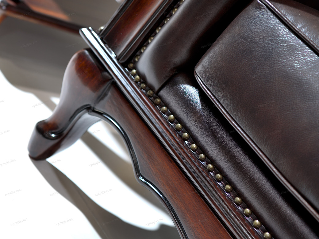 | 产品材质 : | 接触面头层牛皮+黑胡桃木+高密度海绵+俄罗斯落叶松实木框架 |