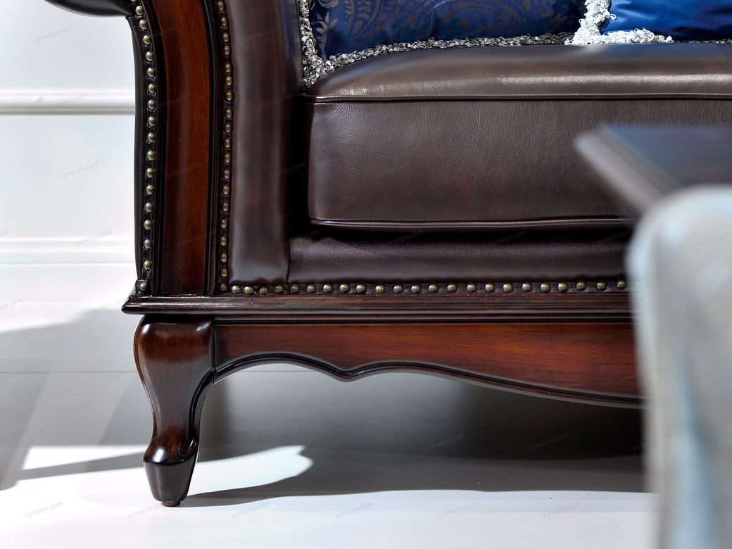 | 产品材质 : 接触面头层牛皮+黑胡桃木+高密度海绵+俄罗斯落叶松实木框架 | 包件数 : 1 | 包装体积(m3) : 4.2 | |