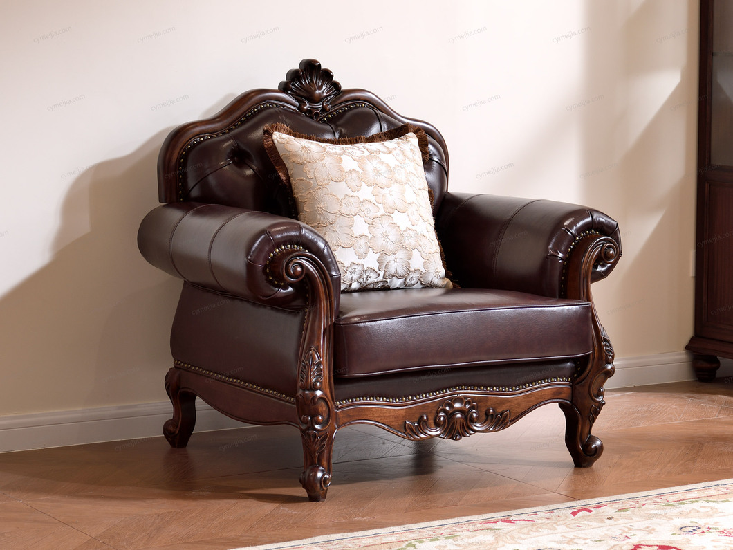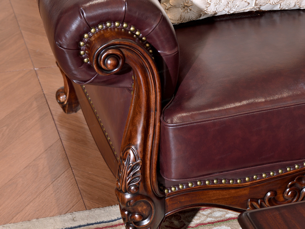 | 产品材质 : 仿真皮+黑胡桃木+高密度海绵+俄罗斯落叶松实木框架 | 包件数 : 1 | 包装体积(m3) : 1.8 | |
