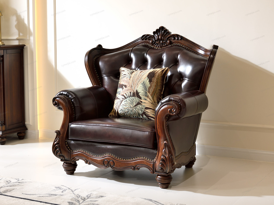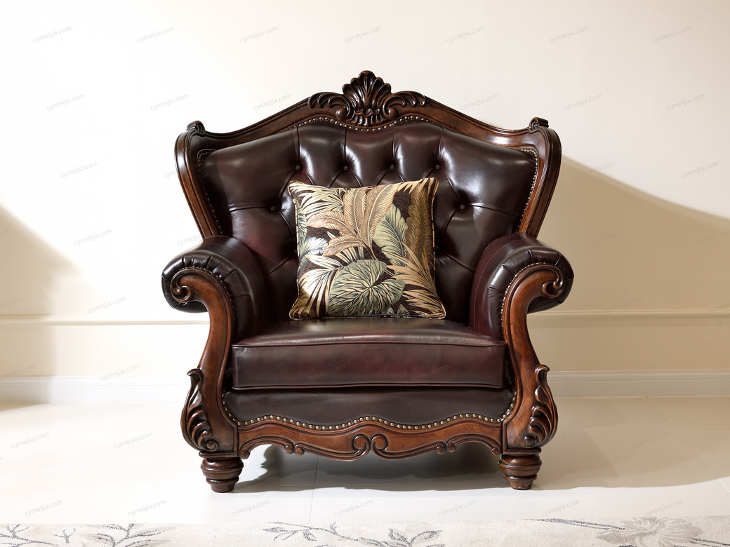 | 产品材质 : | 接触面头层牛皮+黑胡桃木+高密度海绵+俄罗斯落叶松实木框架 |