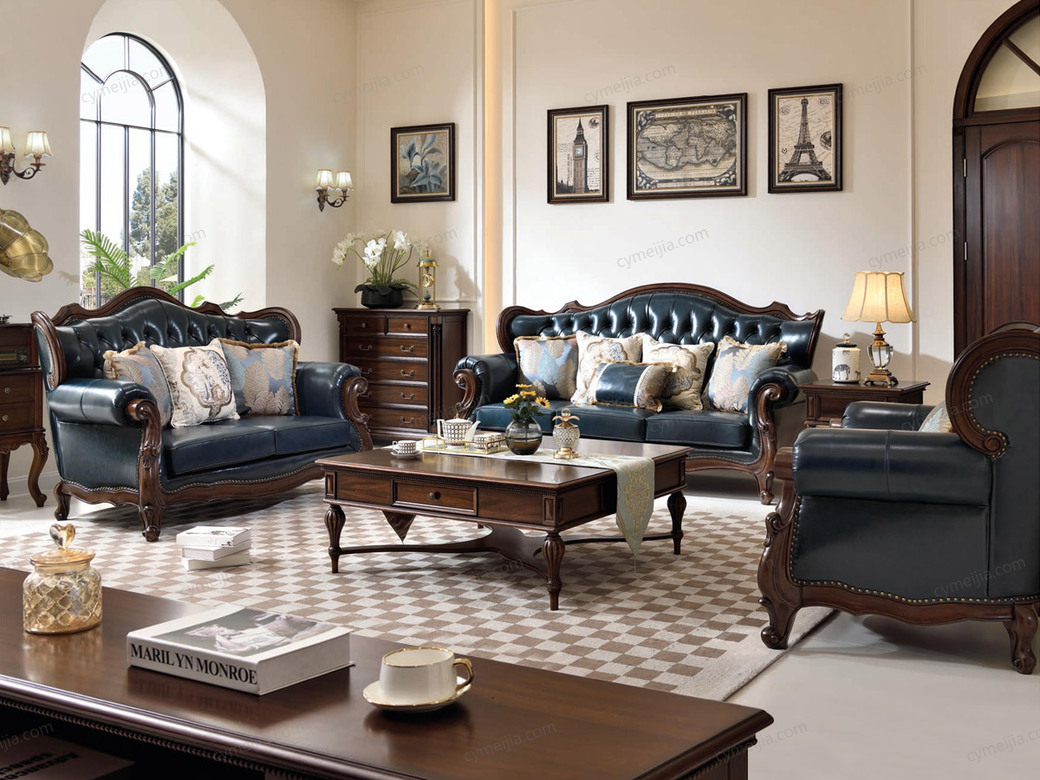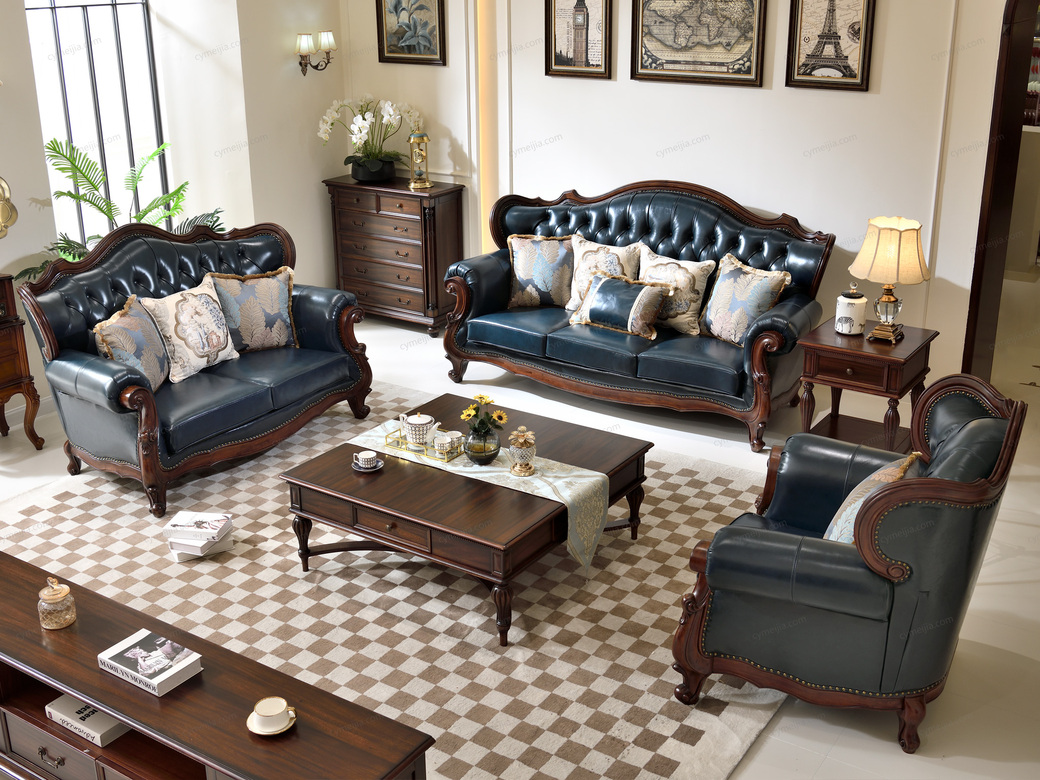 | 产品材质 : 接触面头层牛皮+黑胡桃木+高密度海绵+俄罗斯落叶松实木框架 | 包件数 : 3 | 包装体积(m3) : 10.8 | |