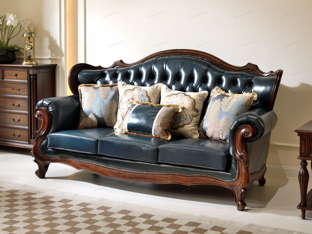 | 产品材质 : 接触面头层牛皮+黑胡桃木+高密度海绵+俄罗斯落叶松实木框架 | 包件数 : 1 | 包装体积(m3) : 4.8 | |