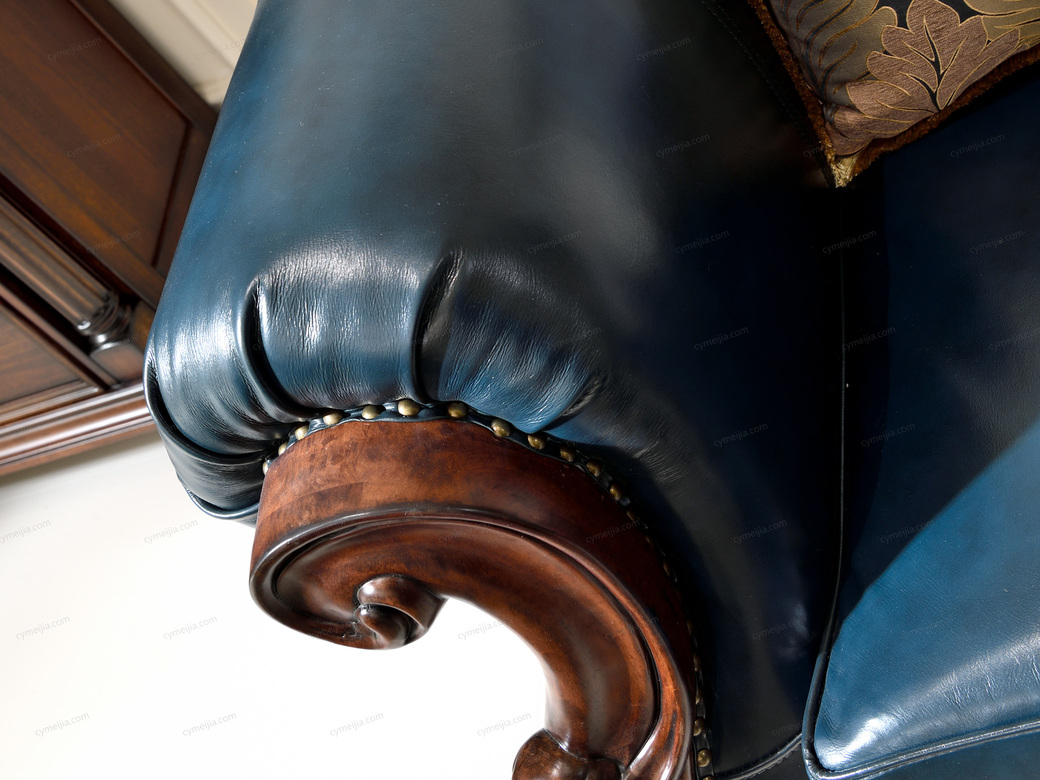 | 产品材质 : | 接触面头层牛皮+黑胡桃木+高密度海绵+俄罗斯落叶松实木框架 |