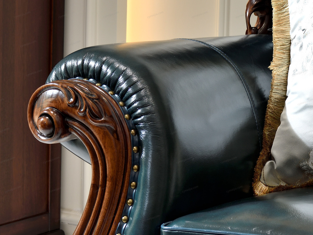 | 产品材质 : | 接触面头层牛皮+黑胡桃木+高密度海绵+俄罗斯落叶松实木框架 |