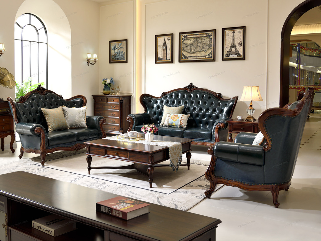 | 产品材质 : 接触面头层牛皮+黑胡桃木+高密度海绵+俄罗斯落叶松实木框架 | 包件数 : 3 | 包装体积(m3) : 9.6 | |