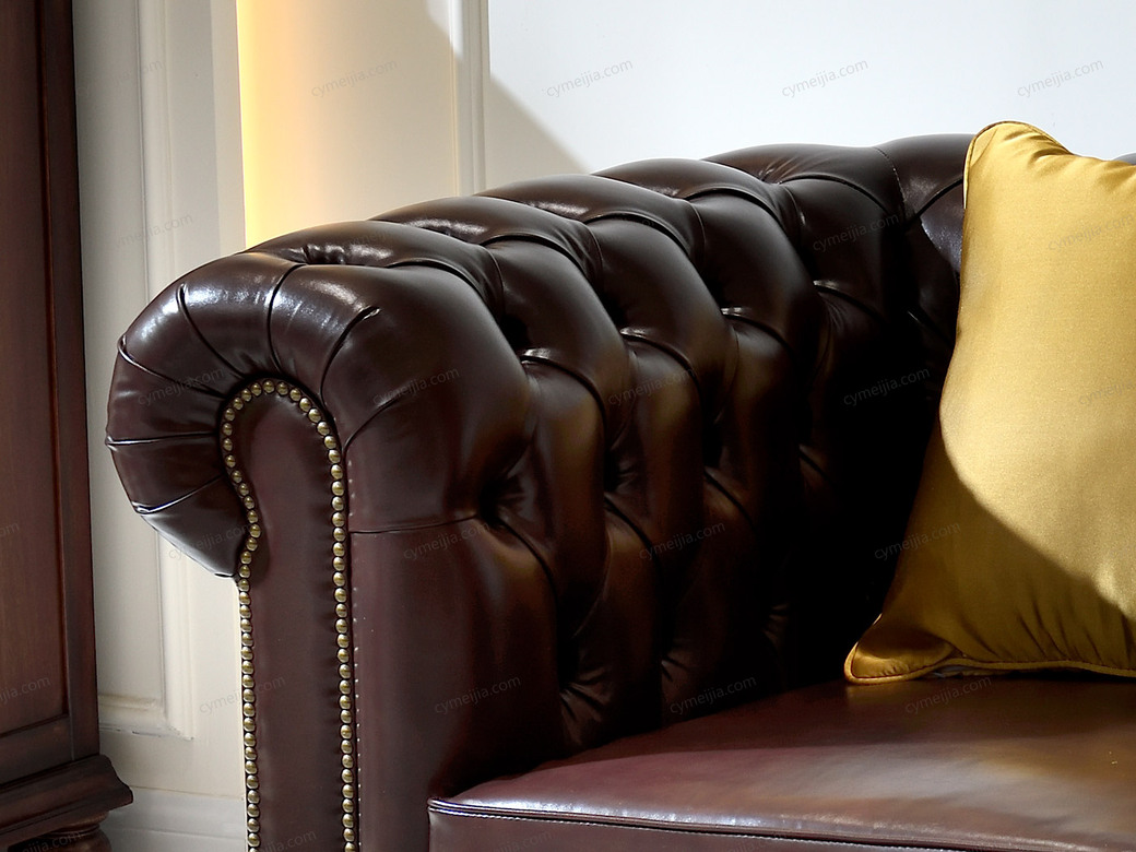 美式复古,经典美学。灵感源自20世纪中叶设计美学。选用复古仿真皮,随岁月流逝沉淀出温润光泽。经典拉扣工艺承载着黄金时代的记忆,不仅适配多种家居场景,更能在长期使用后焕发独特生活质感。