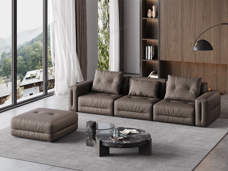 | 产品材质 : 接触面进口头层黄牛皮+羽绒+高回弹海绵+俄罗斯落叶松实木框架 | 包件数 : 4 | 包装体积(m3) : 2.40 | |