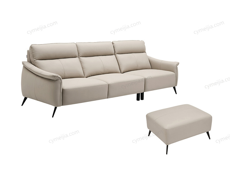 | 产品材质 : | 接触面头层牛皮+高弹海绵+公仔棉+蛇形弹簧+高寒落叶松木框架+枪黑五金脚 |