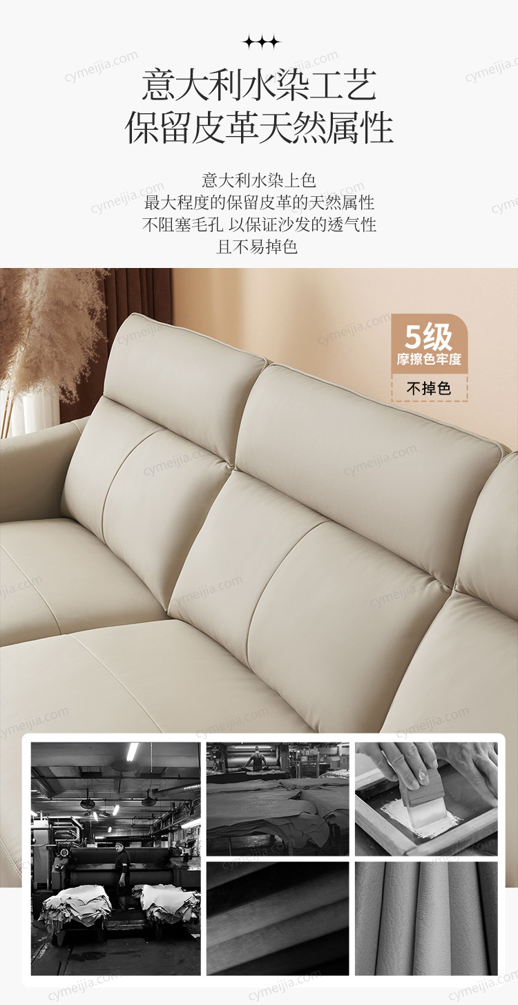 ◕ 意大利水染上色,最大程度的保留皮革的天然属性,不阻塞毛孔,以保证沙发的透气性且不易掉色。