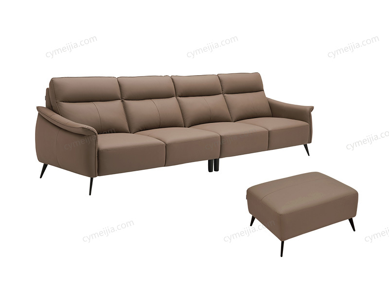 | 产品材质 : | 接触面头层牛皮+高弹海绵+公仔棉+蛇形弹簧+高寒落叶松木框架+枪黑五金脚 |