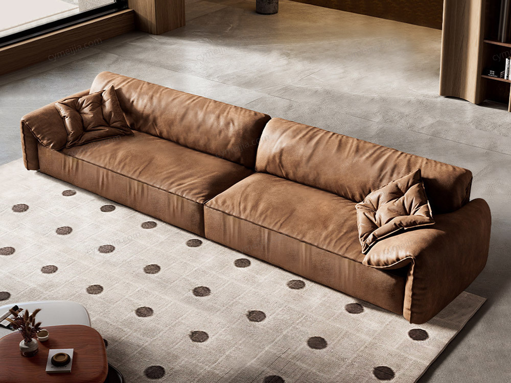 | 产品材质 : | 接触面进口头层黄牛皮+羽绒座包/靠包/扶手+高密度海绵+俄罗斯落叶松实木框架+3cm不锈钢五金脚 |