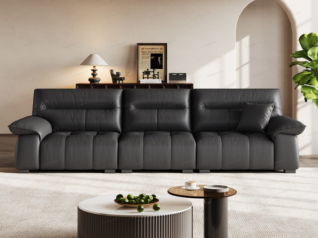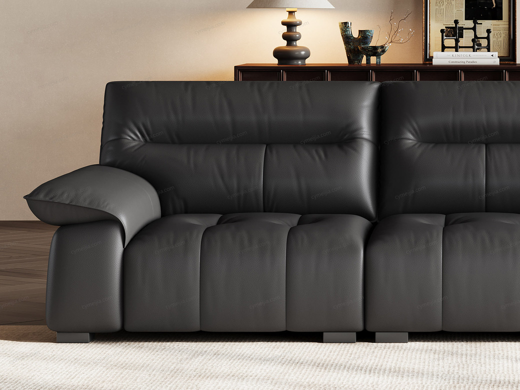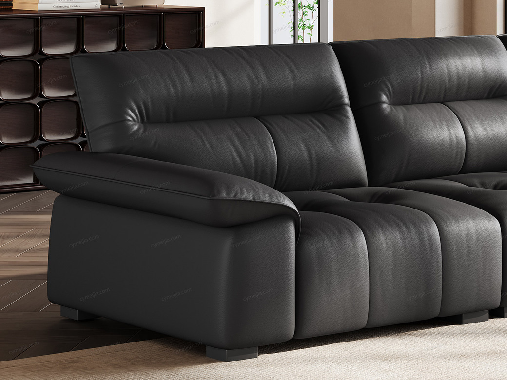 | 产品材质 : | 接触面进口头层黄牛皮+羽绒扶手+高密度海绵+俄罗斯落叶松实木框架+实木脚 |