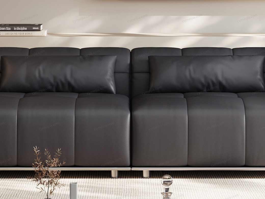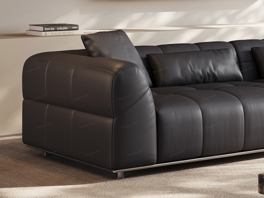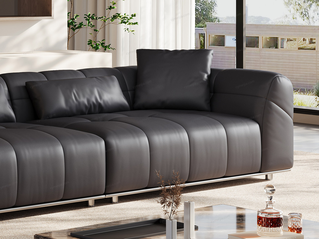 | 产品材质 : | 接触面进口头层黄牛皮+羽绒靠包+高密度海绵+俄罗斯落叶松实木框架+不锈钢底架 |