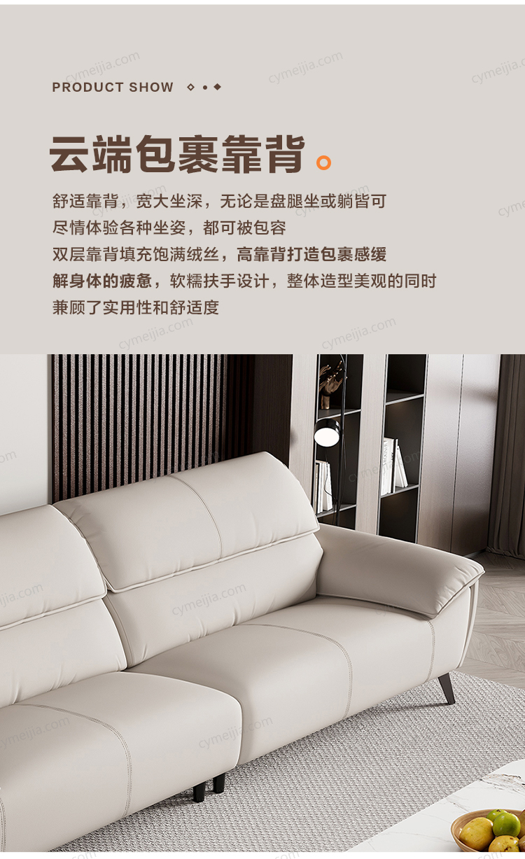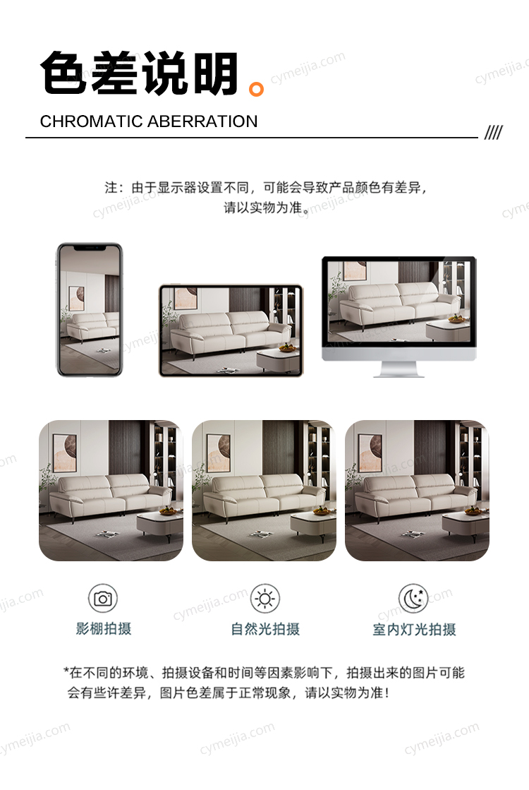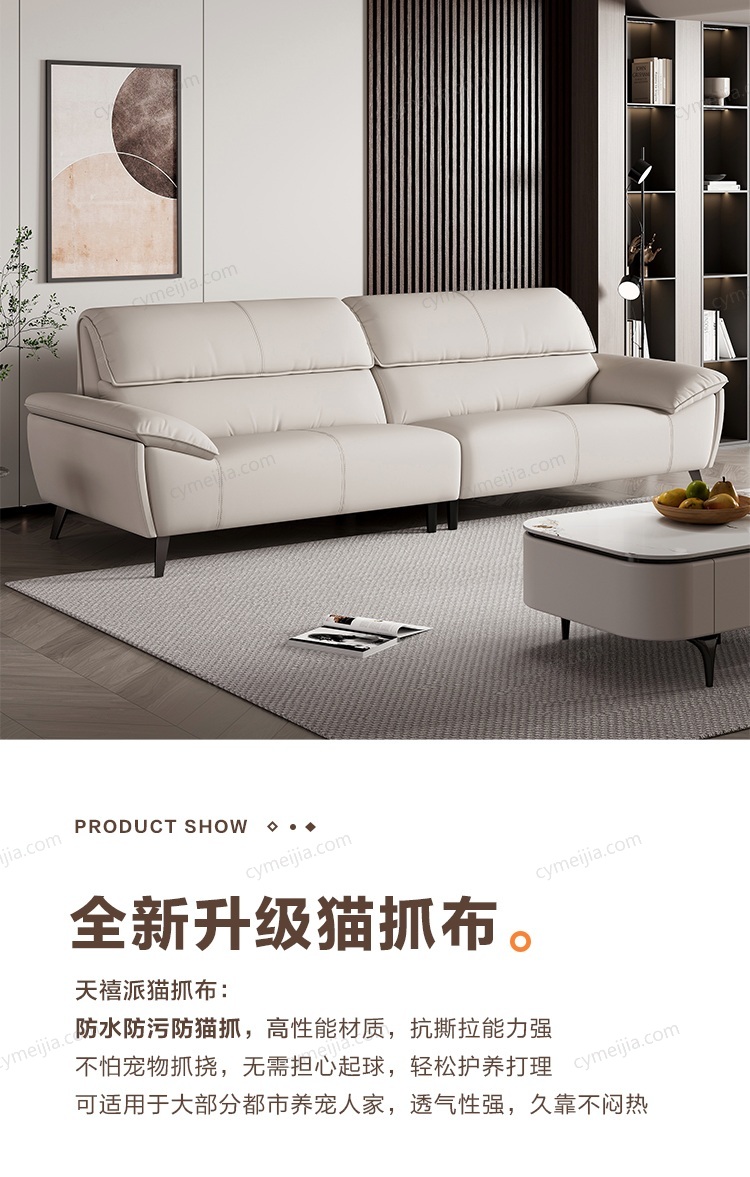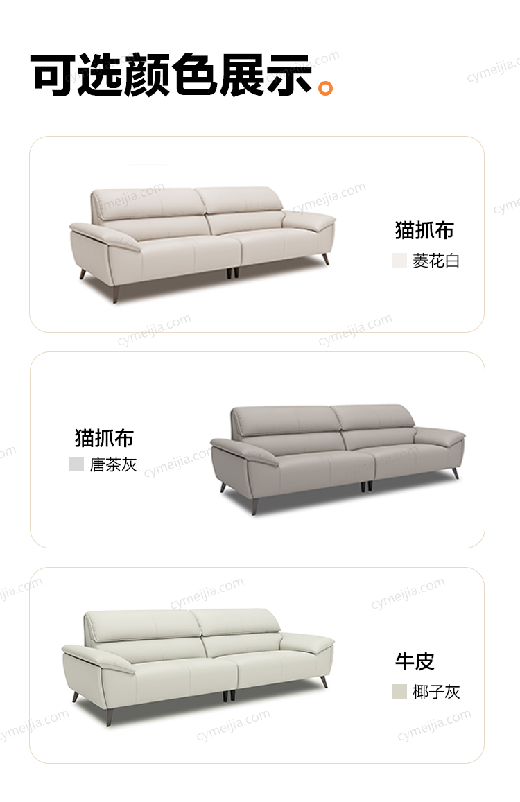 | 产品材质 : | 猫抓皮+仿皮+实木多层板+杨木多层板+高回弹海绵+进口俄罗斯落叶松实木框架+14cm金属质感高脚 |