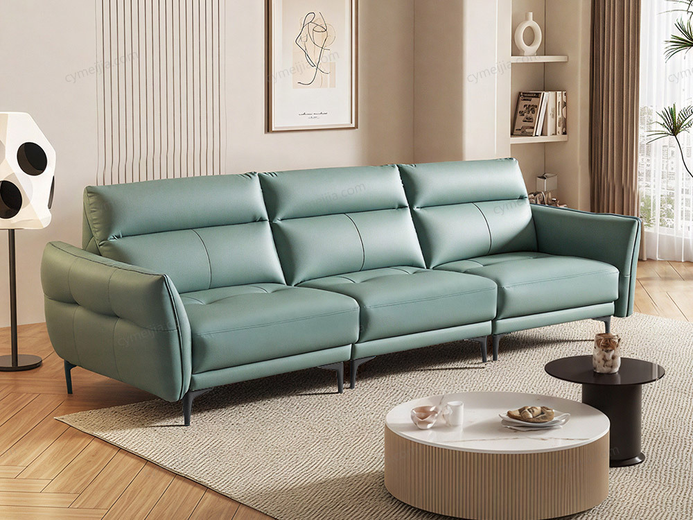| 产品材质 : | 接触面头层牛皮+高回弹海绵+公仔棉+进口俄罗斯落叶松实木框架 |