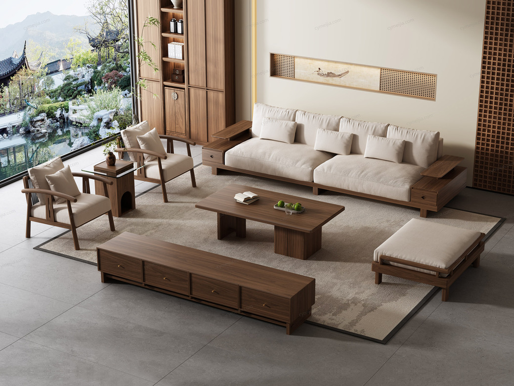 | 产品材质 : | 沙发:南美黑胡桃木+棉麻布+羽绒+高密度海绵;休闲椅:南美黑胡桃木+棉麻布+高密度海绵 |