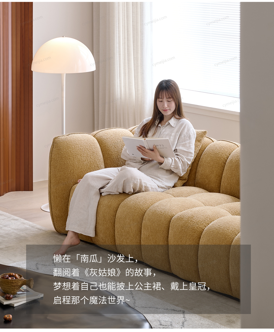 ☀ 南瓜造型:紧致深拉点工艺勾勒精致轮廓,温柔奶油南瓜,圆润可爱又高级;搭配蓬松羽绒抱枕,窝在上面尽享居家惬意时光。