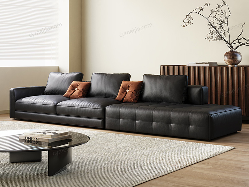 | 产品材质 : | 接触面进口头层黄牛皮+羽绒靠包+高回弹海绵+俄罗斯落叶松实木框架 |