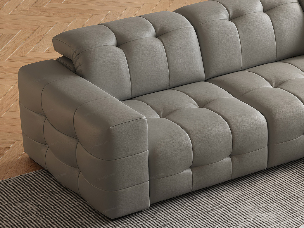 | 产品材质 : 接触面进口头层黄牛皮+高回弹海绵+俄罗斯落叶松实木框架 | 包件数 : 3 | 包装体积(m3) : 2.40 | |