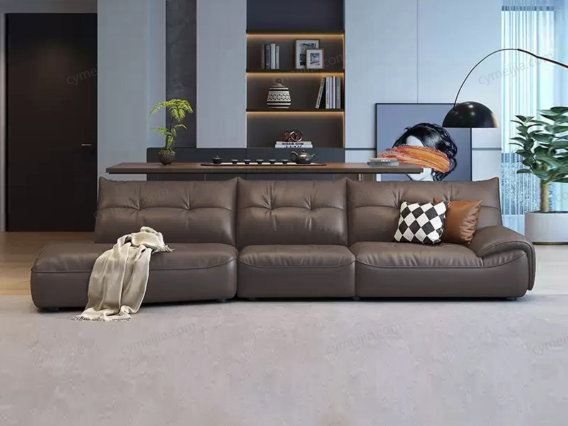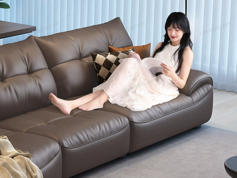 以高定头层牛皮与阔绰坐深,诠释慵懒奢华。松软环抱靠包结合稳固实木框架,确保久坐不倦。其沉稳造型与沉浸式舒适,专为追求品质的精英家庭打造,从容适配大平层与别墅客厅,于方寸间彰显不凡气度。