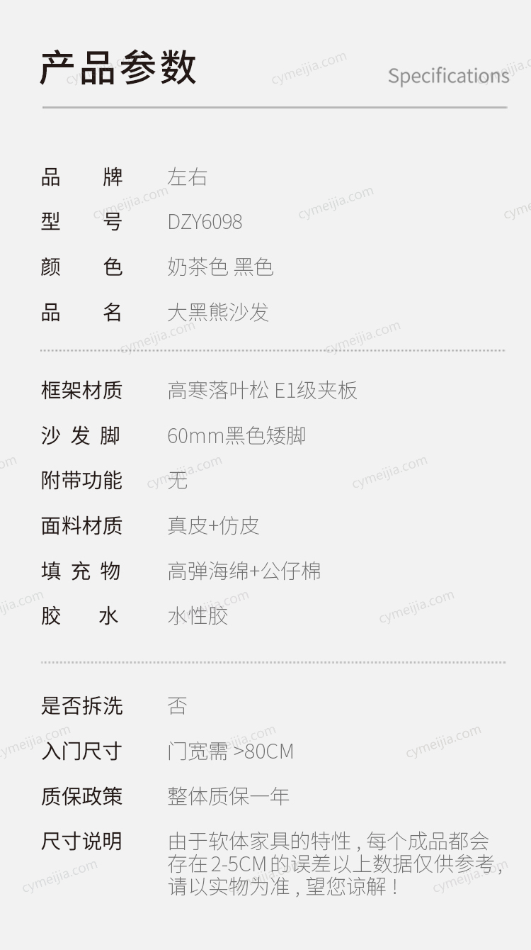 | 品牌 : 左右沙发 | 型号 : ZYSF-DZY6098-ZP-HS-4-SF | 风格 : 极简 | |