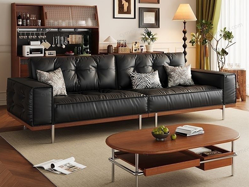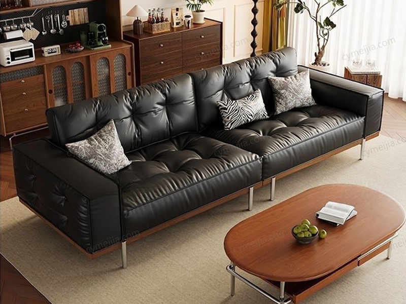 | 产品材质 : | 接触面进口头层黄牛皮+羽绒/高密度海绵+俄罗斯落叶松实木框架+五金脚 |