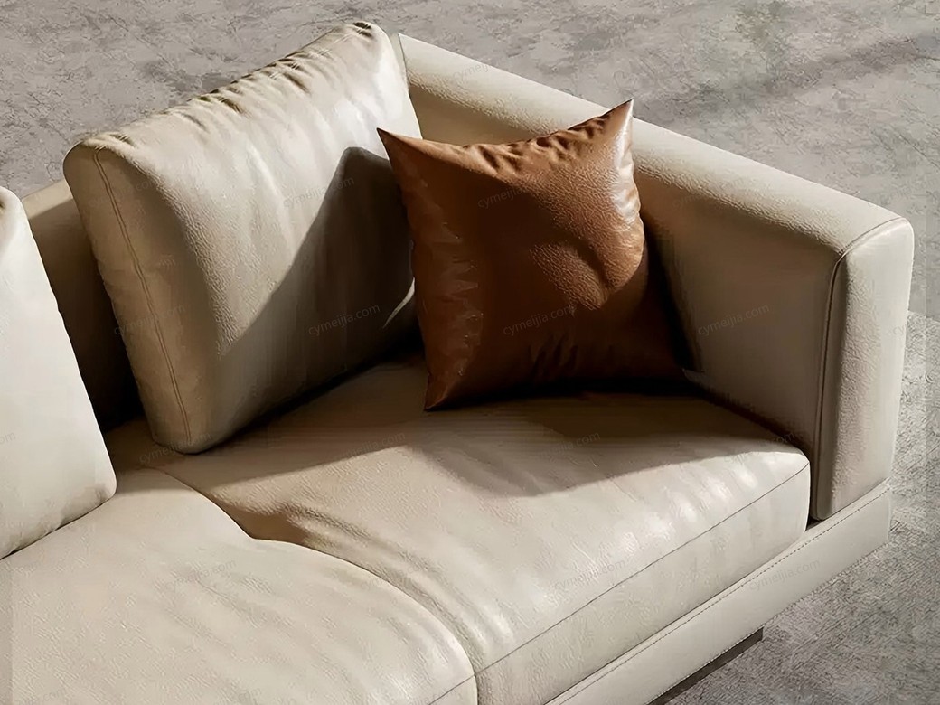 | 产品材质 : | 接触面进口头层黄牛皮+高回弹海绵+羽绒靠包/抱枕+俄罗斯落叶松实木框架+五金脚 |
