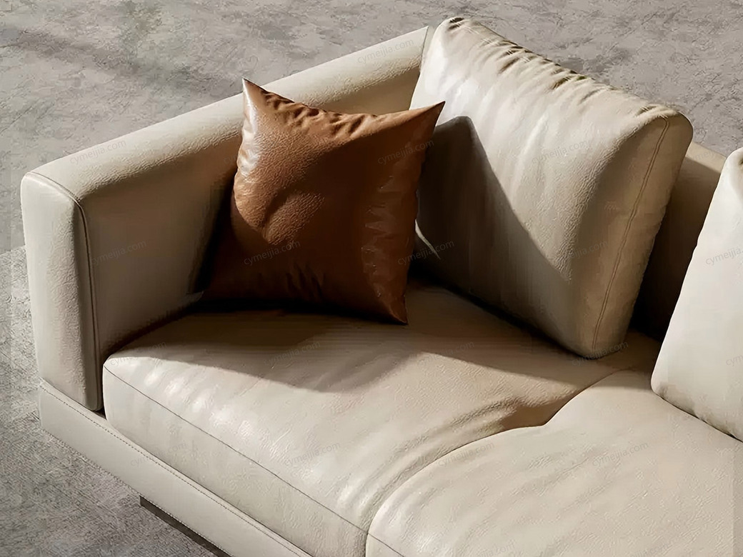 | 产品材质 : | 接触面进口头层黄牛皮+高回弹海绵+羽绒靠包/抱枕+俄罗斯落叶松实木框架+五金脚 |