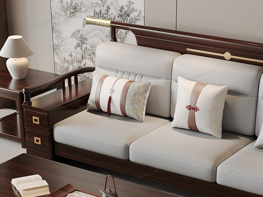 ✿ 宽大扶手设计兼具储物功能,搭配质感五金装饰,实用且中式韵味十足。