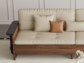 | 产品材质 : 进口红斑马+生态仿真皮+羽绒靠包+高密度海绵+实木多层板 | 包件数 : 5 | 包装体积(m3) : 1.43 | |