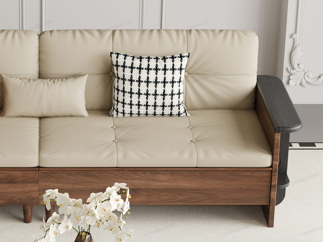 | 产品材质 : | 进口红斑马+生态仿真皮+羽绒靠包+高密度海绵+实木多层板 |