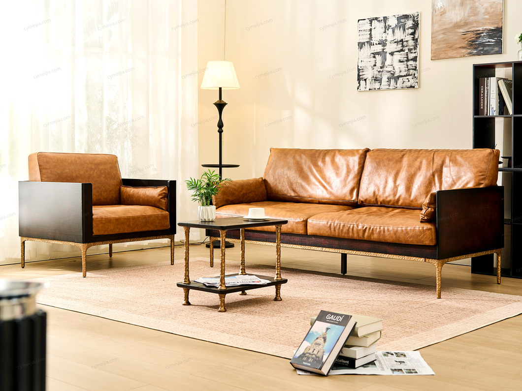 | 产品材质 : | 表面微雕进口橡胶木+油蜡仿真皮+高密度海绵+复合金属脚+优质金属漆 |