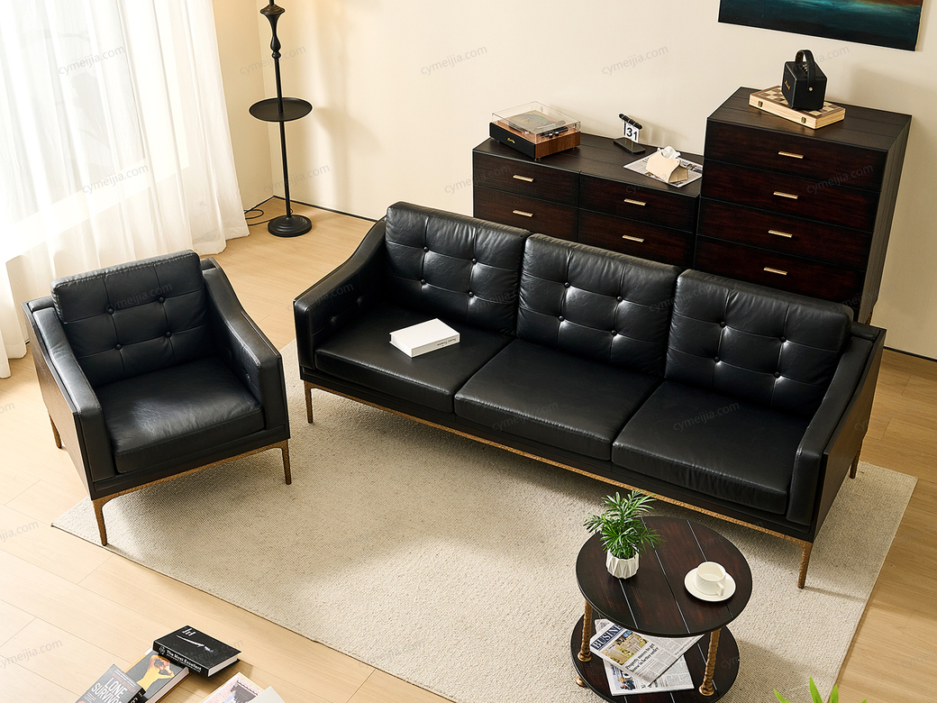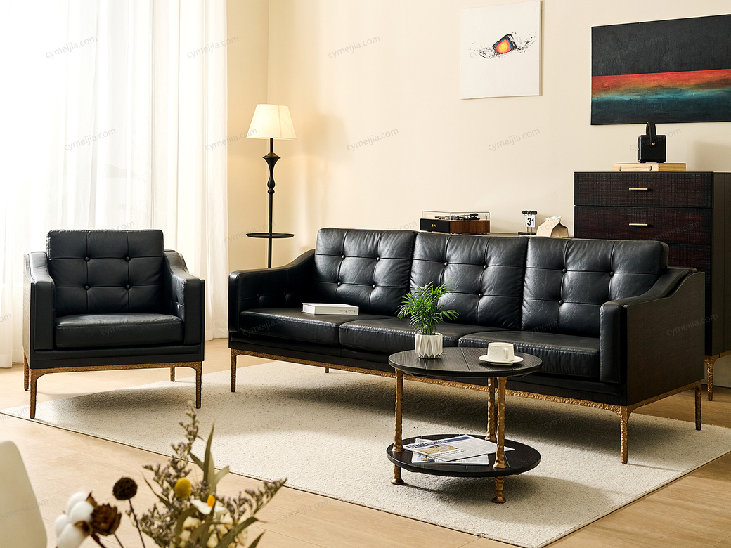 经典英伦风范融入现代生活。切斯菲尔德纽扣与弧线扶手,在细节中诉说复古美学。方正的廓形与适中的尺度,既能成为大平层客厅的优雅焦点,也完美适配精品公寓的开间布局。无论是搭配黄铜灯具、丝绒单椅,还是与大理石茶几相映成趣,都能轻松打造质感十足的绅士品格空间。
