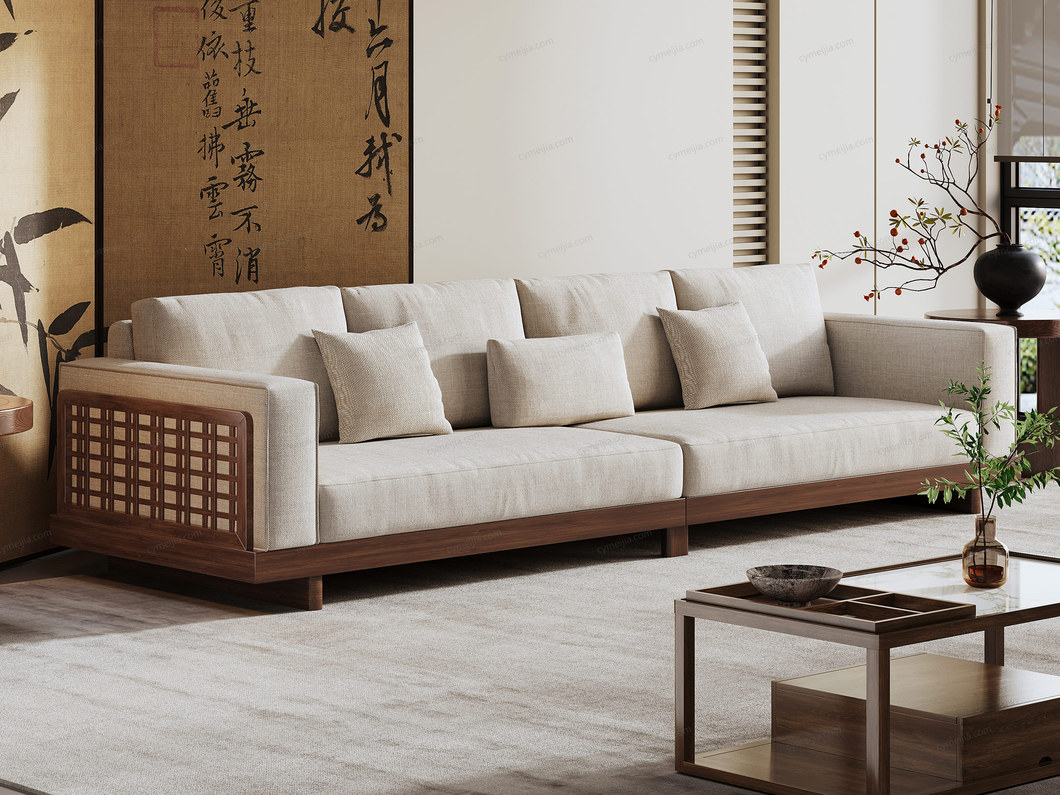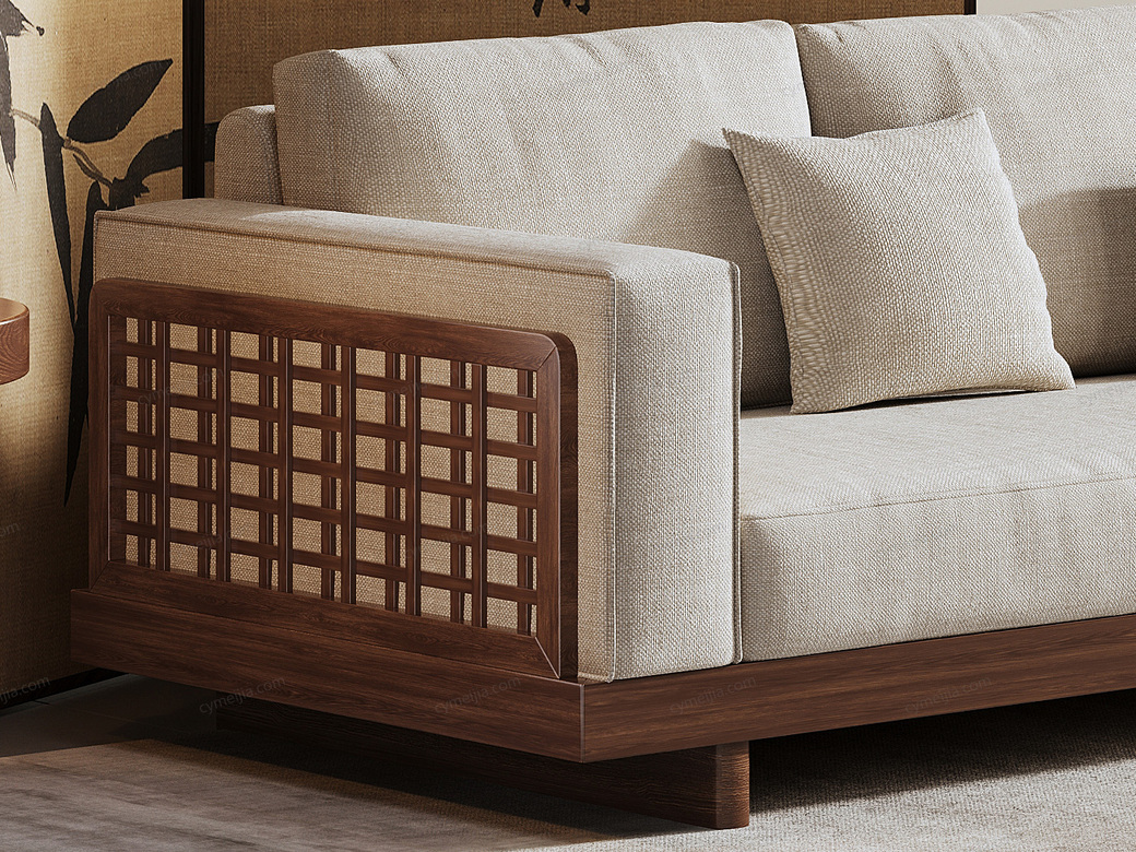☀ 宋代文人推崇“器以载道”,即注重材质本身的自然质感。沙发以胡桃色原木与素色棉麻为基调,简约精致的设计,摒弃所有不必要的雕琢修饰,便足以承载文人的风骨气节,打造宋式不张扬的高级美。