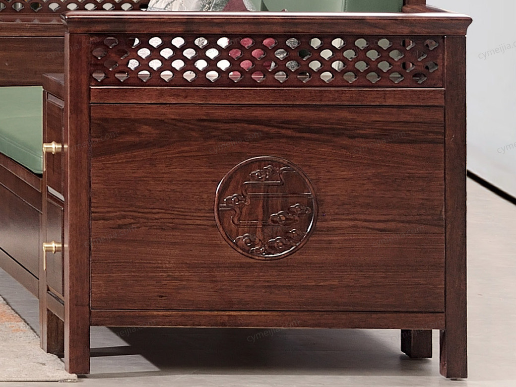 | 产品材质 : | 进口乌金木+棉麻+高密度海绵+五金装饰+实木多层板 |