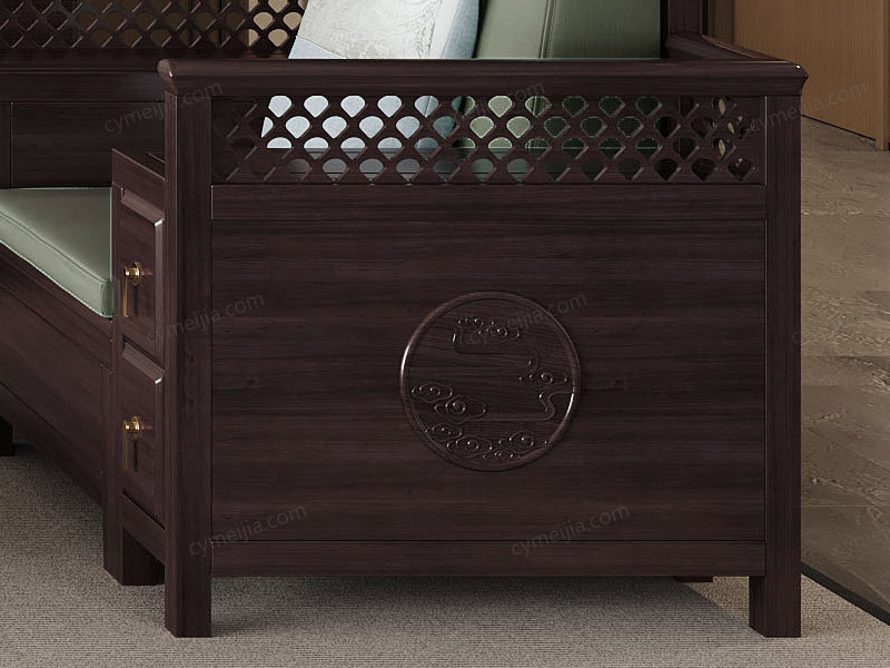 | 产品材质 : | 进口乌金木+棉麻+高密度海绵+五金装饰+实木多层板 |
