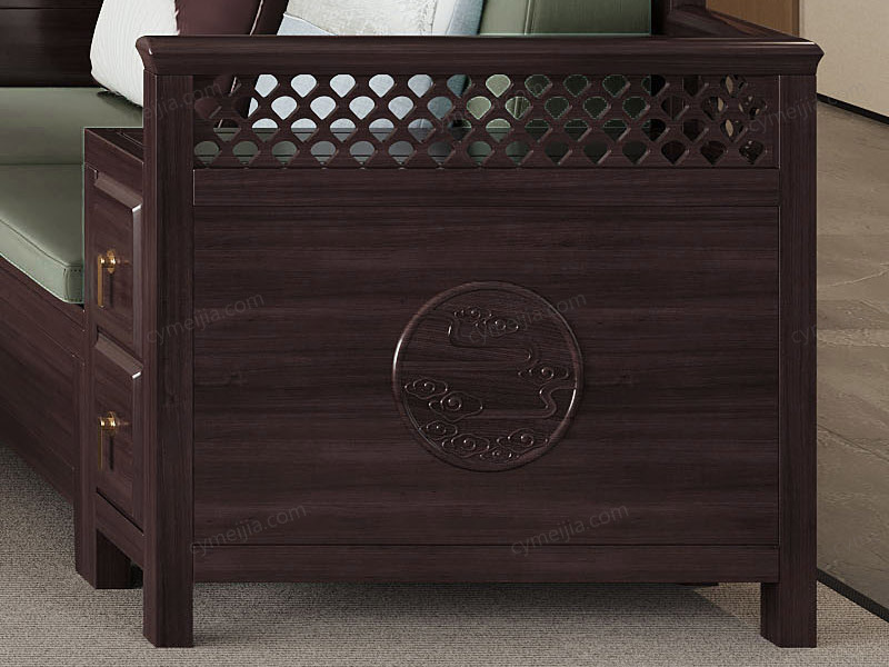 | 产品材质 : | 进口乌金木+棉麻+高密度海绵+五金装饰+实木多层板 |
