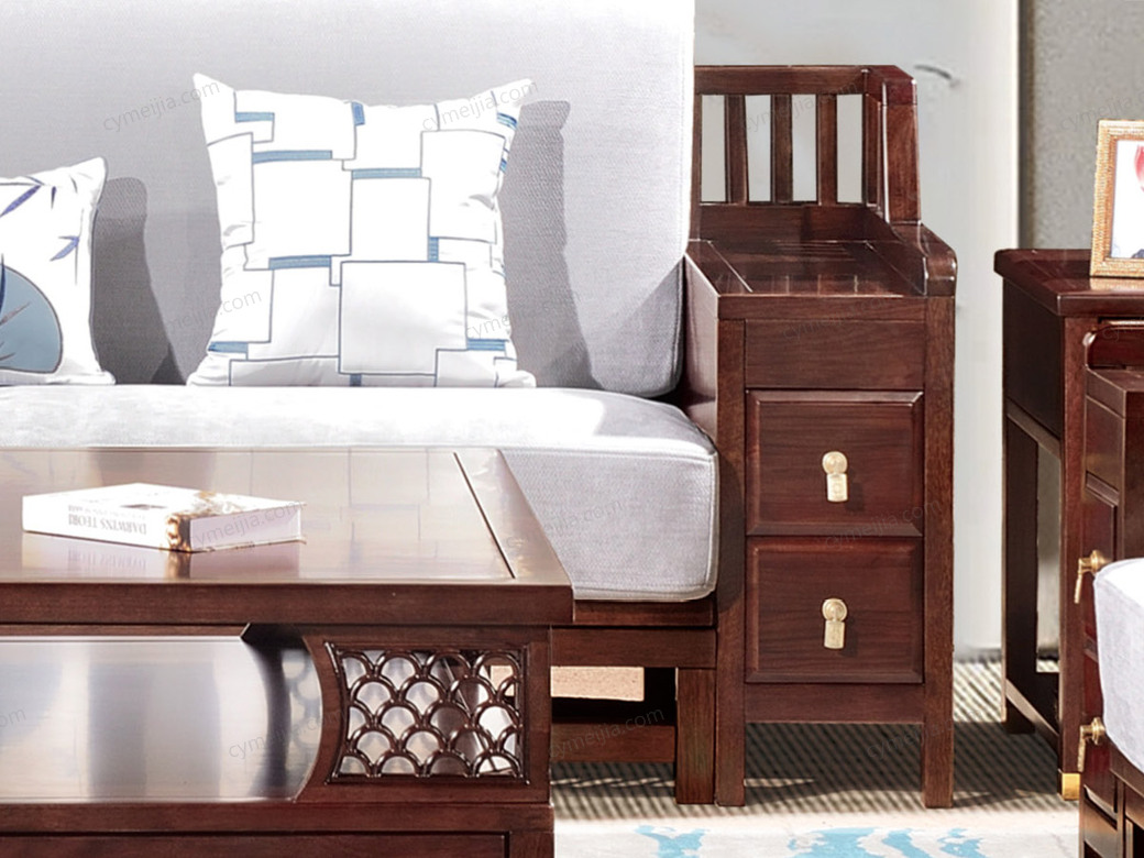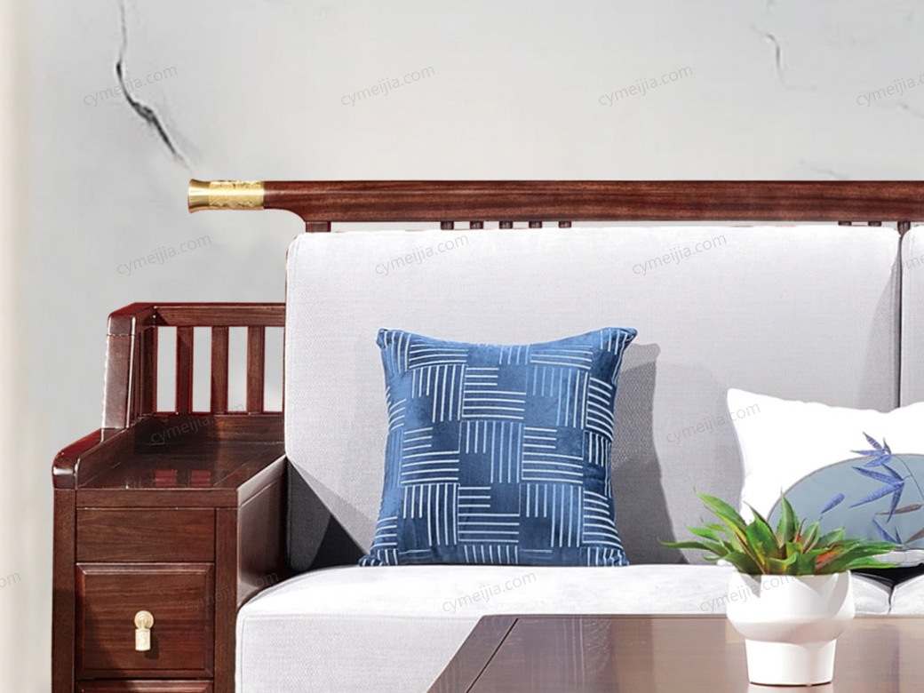 | 产品材质 : | 进口乌金木+棉麻+高密度海绵+五金装饰+实木多层板 |